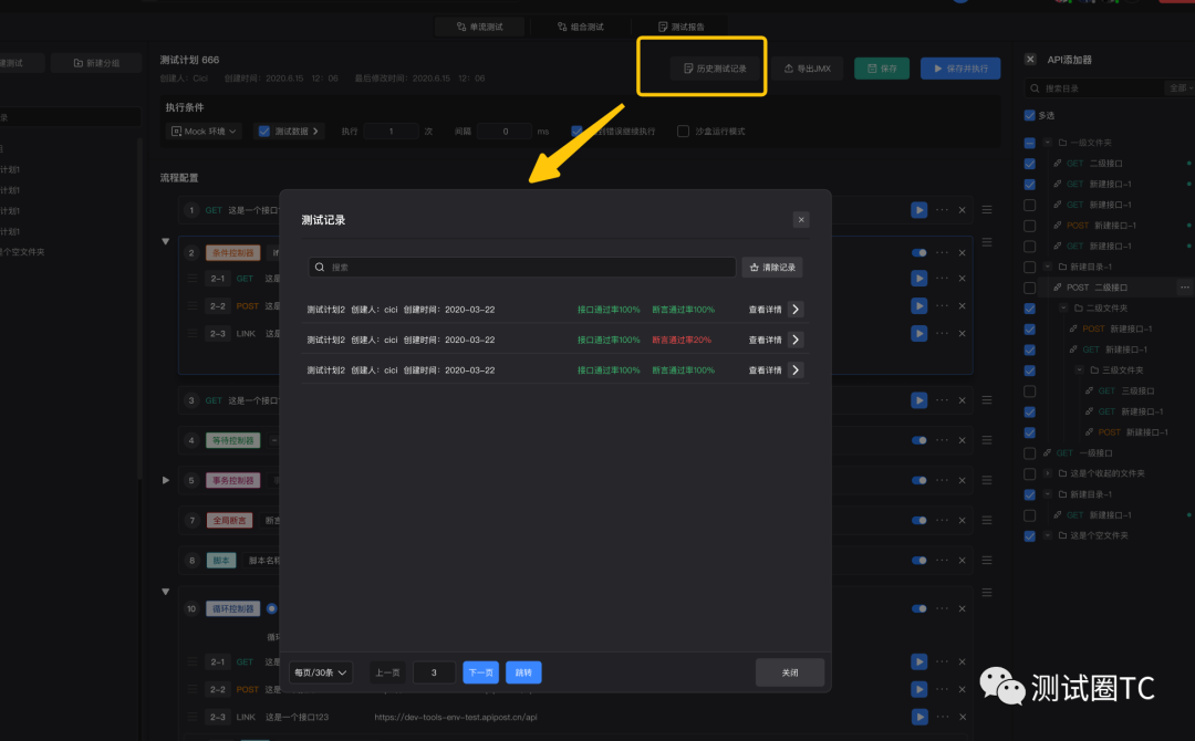 有些时候我们测试的结果并未保存,那未保存的测试记录该怎么追溯呢?Apipost会为您保存当前测试的近100条执行记录,我们可以在下图位置查看该记录的测试结果。
