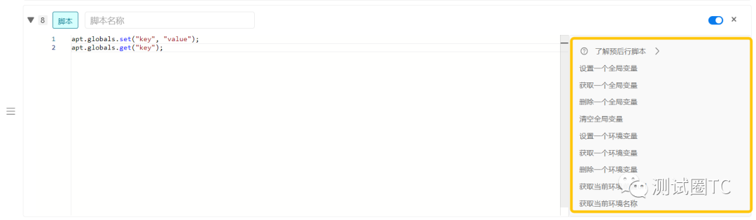 5.脚本:作用:支持自定义脚本,Apipost提供常用的脚本。