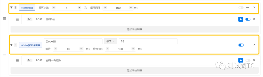 2.次数控制器/while控制器:按指定循环方法,循环该控制器下的所有接口。