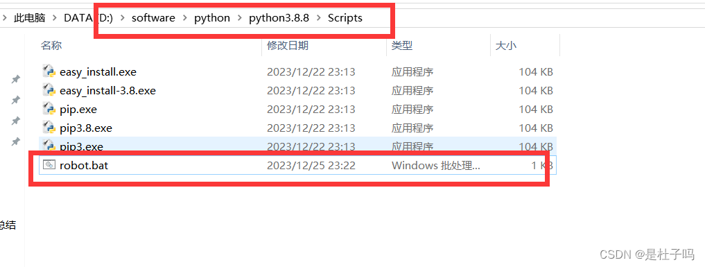 首先在python安装路径Scripts文件夹下创建可执行文件robot.bat