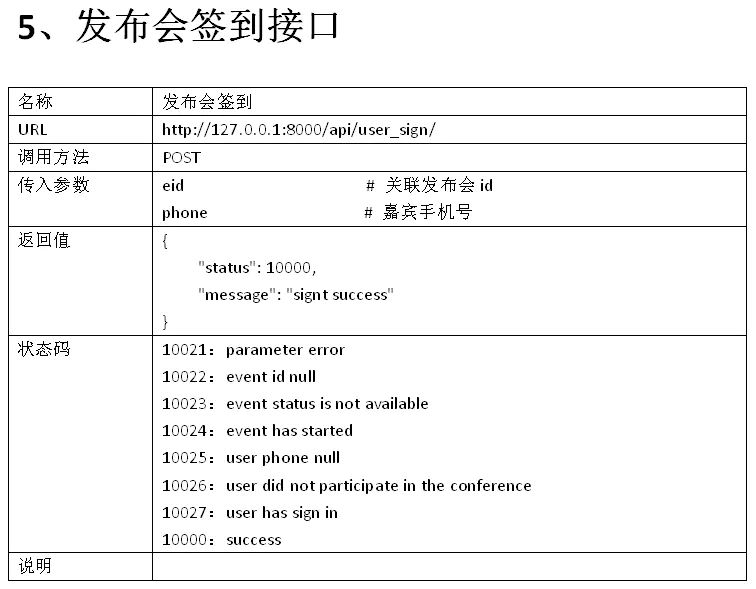 我们使用的项目是发布会签到系统。总共有5个接口,虽然不多,但足够学习使用。