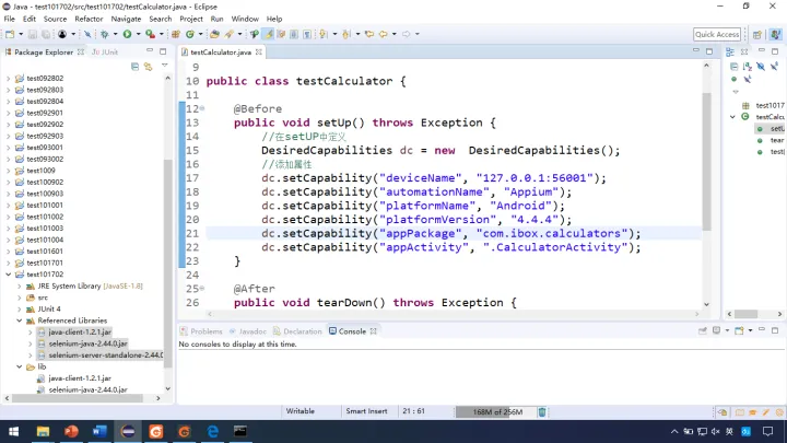 4.开始编写测试脚本。在Junit的Java文件中,设置Desired Capabilities。