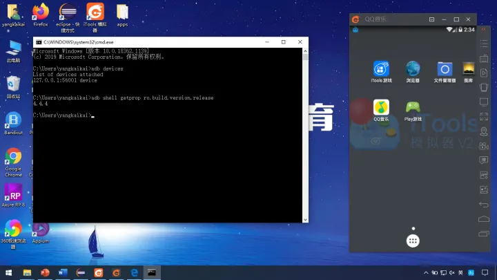 使用adb命令,获取设备名称。打开模拟器,使用adb命令:adb devices.