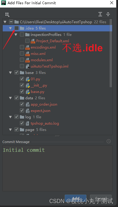 2)在弹出的对话框中去掉 .idle的勾选,其他自己写的目录和py文件都勾选上,点击 Add 按钮