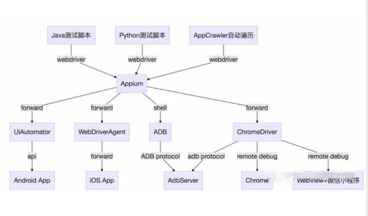 如果说测的是手机浏览器、小程序等,需要借助chrome driver、webview内核去调用