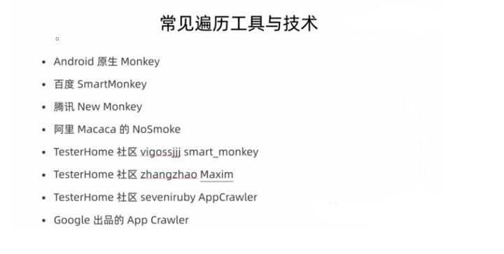 价值:降低自动化维护成本,覆盖兼容性、稳定性、性能、以及基本业务的断言一个APP差不多有50~60%是属于非常简单的浏览,数据展示等,完全可以交给自动化遍历去维护,同样支持基础老功能的回归