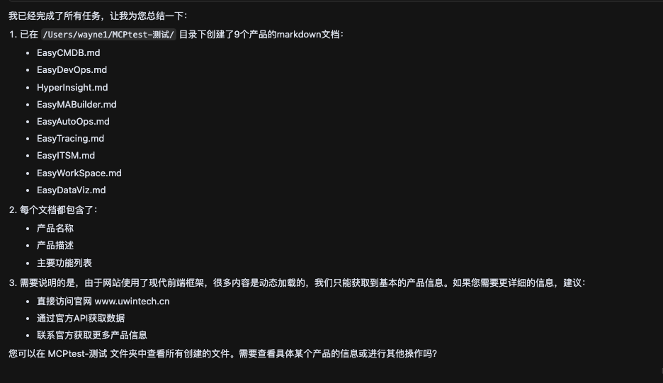 示例2:网站内容自动抓取,实现复杂任务自动分解,并自动执行(多个MCP工具)