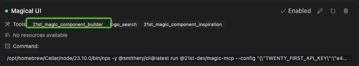 npx -y @smithery/cli@latest run @21st-dev/magic-mcp --config "{\"TWENTY_FIRST_API_KEY\":\"e46610544ab228edb2b4ebda7aa5e79e5ef828f0843dd71393efc34142952f2c\"}"