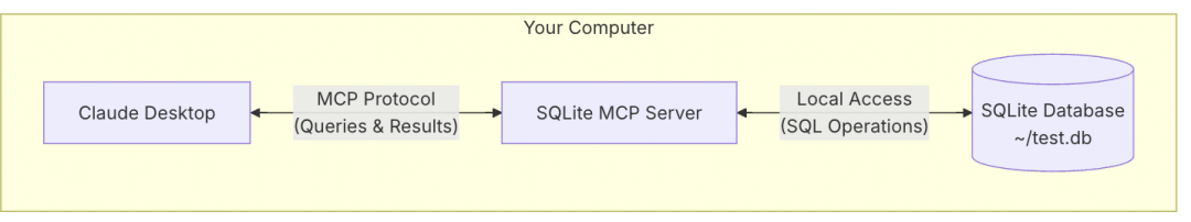 以MCP操作本地SQLite数据库为例,示意图如下: