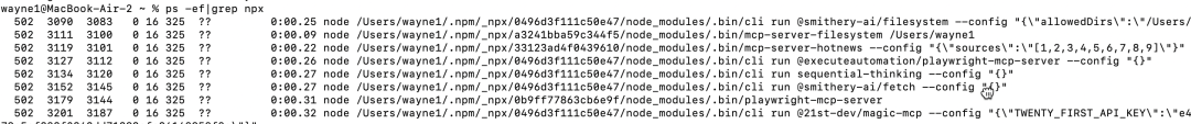 npx -y @smithery/cli@latest run @smithery-ai/filesystem --config "{\"allowedDirs\":\"/Users/wayne1\"}"
