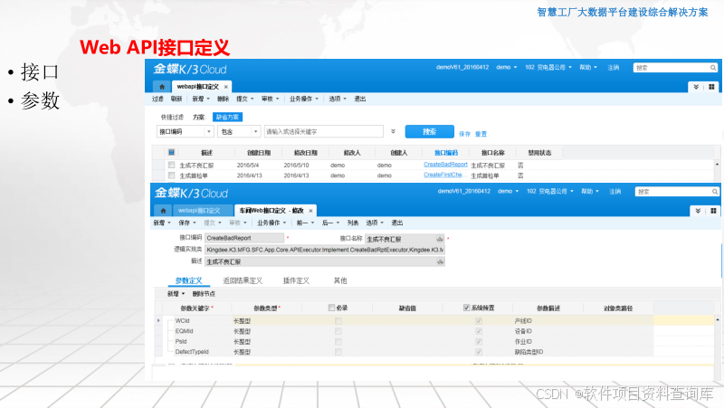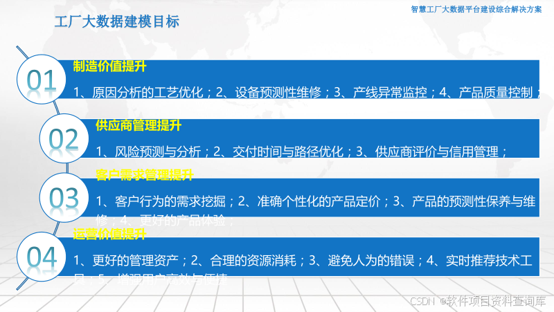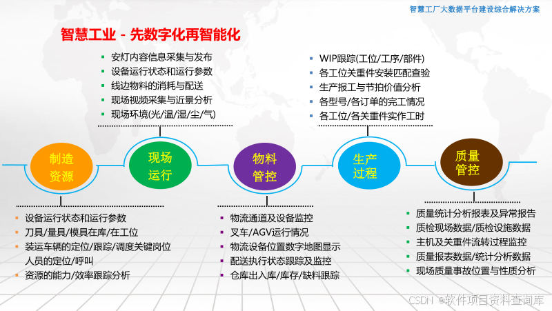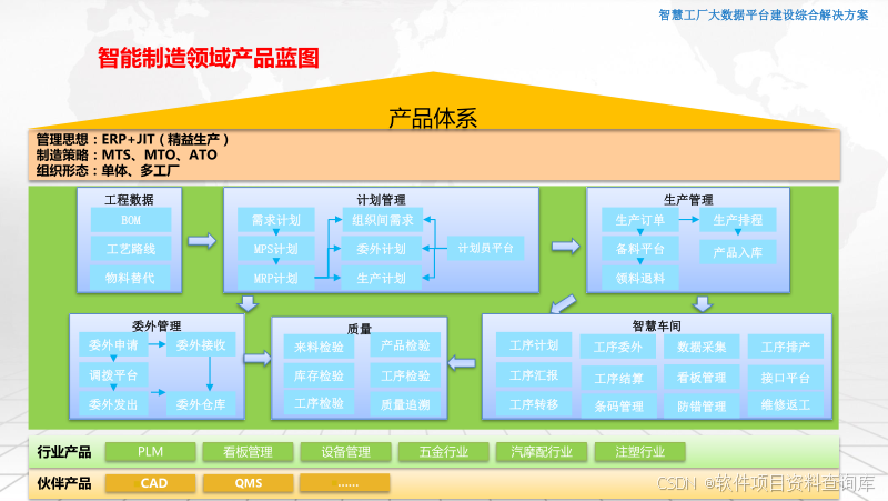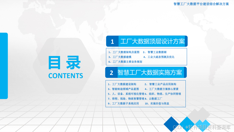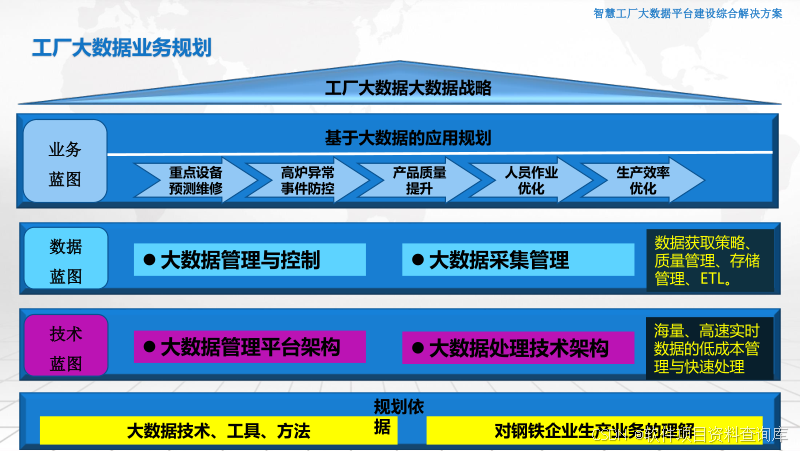 1、工厂大数据顶层设计方案1.1、工厂大数据架构及蓝图1.2、 智慧工业数据湖1.3、工厂大数据建模1.4、工业大疏忽预测及优化1.6、工厂大数据主要业务规划2、智慧工厂大数据实施方案2.1、工厂大数据建设架构2.2、 智慧工业产品应用架构2.3、智能制造领域产品蓝图2.4、工厂大数据方案核心要素2.5、人、设备、系统可视化管理2.6、组织、物流、生产协同管理2.7、排程、现场、物流智慧管理2.8