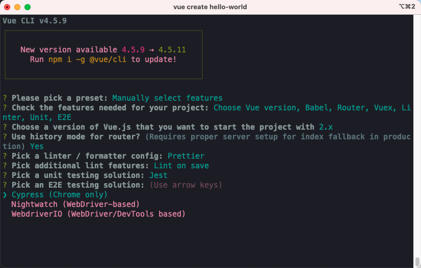 vue create hello-world