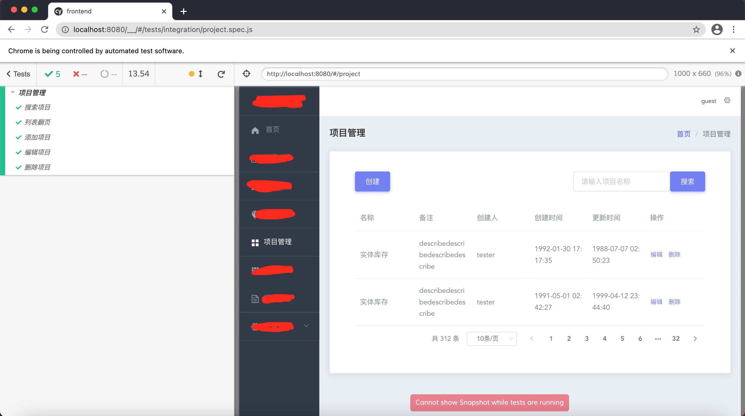 describe('项目管理', () => {
