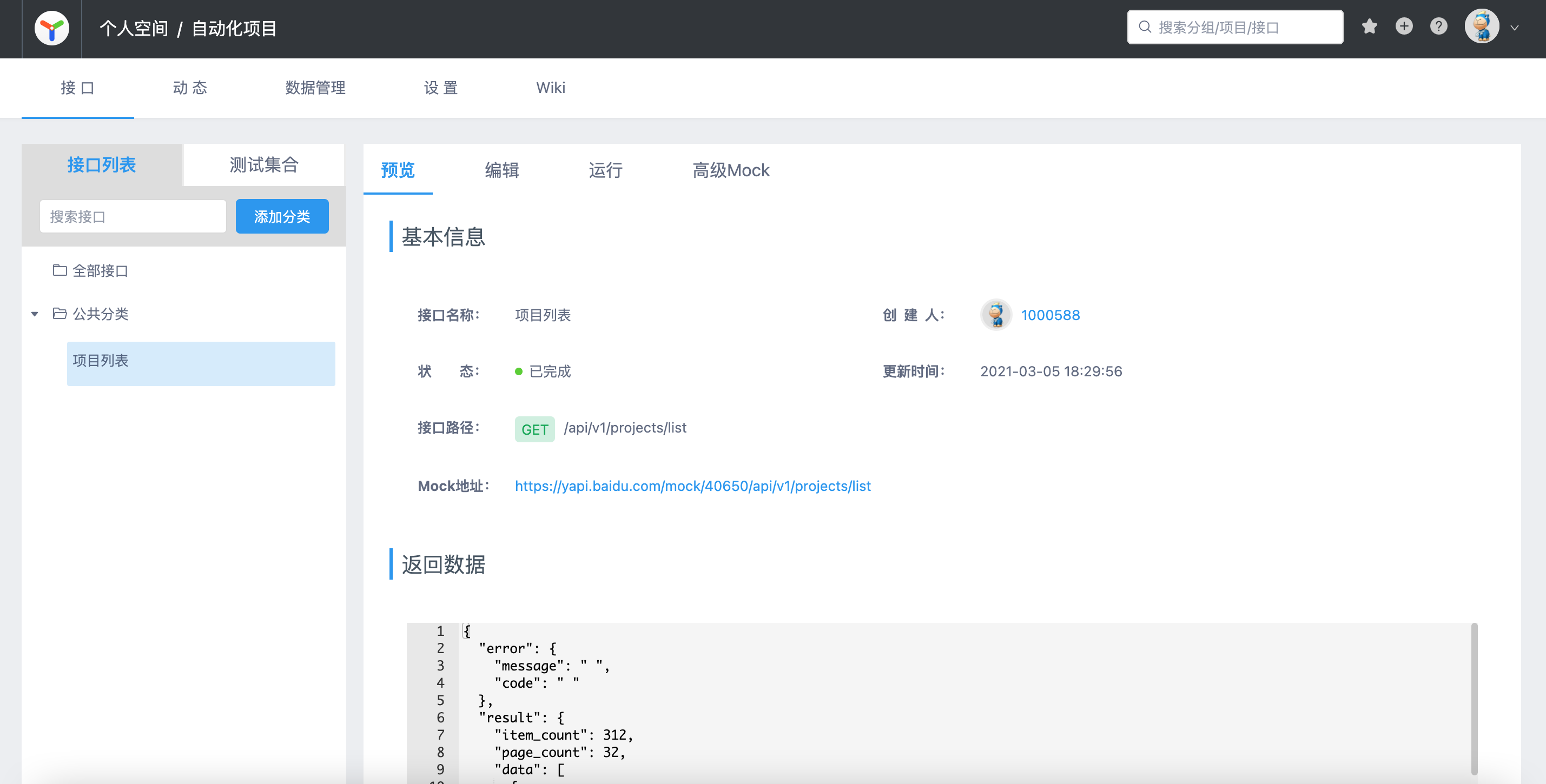 https://yapi.baidu.com/mock/40650/api/v1/projects/list