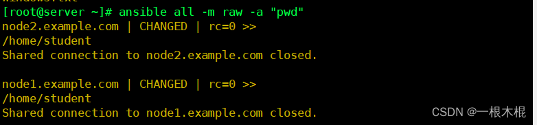 - raw模块执行pwd命令