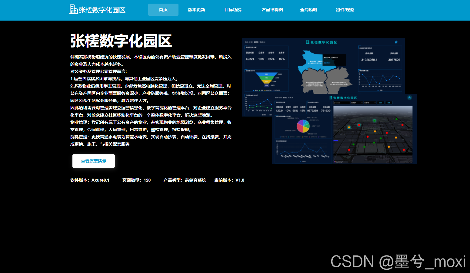 数字化园区、智慧园区、物业管理、园区设备、房屋资源、维修业务、巡查管理、招商管理、商业租售管理,收支管理,合同管理,人员管理,日常维护,巡检管理,报检报修、物业驾驶舱、axure原型、rp原型