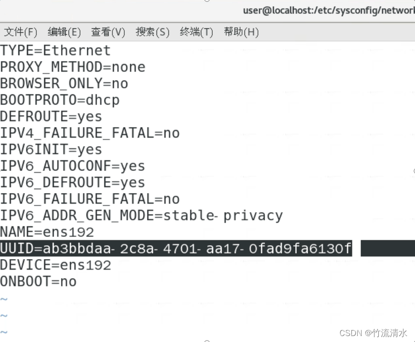 删除 HWADDR 行和 UUID 行。(如果有的话)