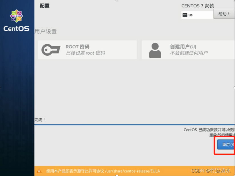 系统安装完成,点击 Reboot 重新启动 操作系统安装完毕!