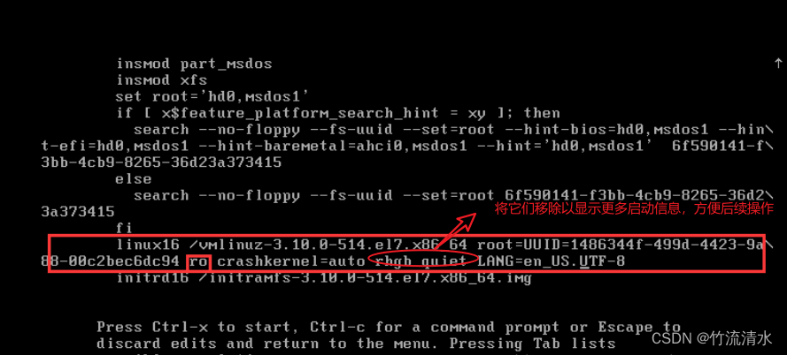 CentOS7进入单用户模式,和CentOS5,6系列不同,有点复杂,同样进入启动菜单->e->找到linux16开头的行,删除rhgb和quiet,同时在后面添加init=/sysroot/bin/sh->重新以可读可写方式挂载/分区.