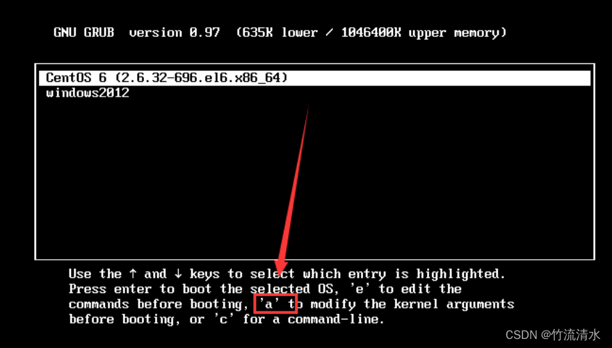 CentOS6进入单用户模式比较简单,重新启动后在启动界面任意按一个字符,进入选择启动项菜单->a->输入S,s,single,1中的任意一个即可进入单用户模式。