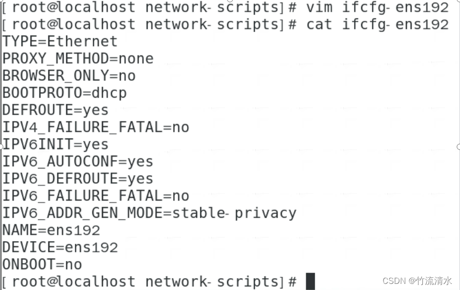 网络设备名称为:ens192 --这是系统分配标识数字,你的环境可能不同,如果网卡多起来,分辨困难,建议采取命名规范化配置,这样日后维护看到名字就知道是哪块网卡