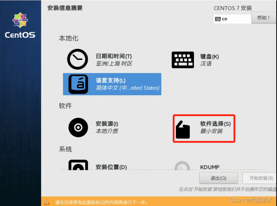 点击“软件选择”:(选择带GUI的服务器及其配置)