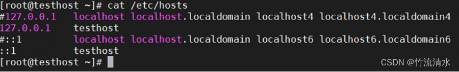 一个是针对 IPv4 地址 127.0.0.1,另一个是针对 IPv6 地址 ::1,都将主机名 testhost 解析到本地回环地址,这样可以确保在本机上通过这个主机名访问自己时,能够正确解析到本地。