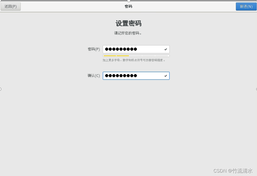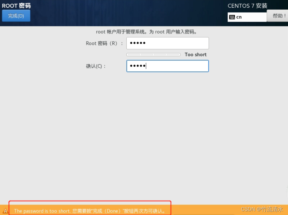 设置root 用户密码,如果不符合复杂要求,需要点击2次完成。