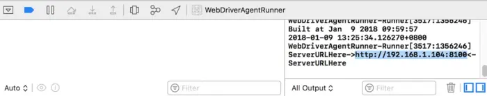 脚本运行完成后,同样手机/模拟器上会出现一个无图标的 WebDriverAgent 应用,启动之后,马上又返回到桌面。此时终端会输出 IP 地址和端口。