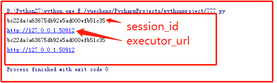 第二步操作:重新senlium中start_seeion()方法,并将第一步获取到session_id和executor_url,实现重新建立会话,代码如下: