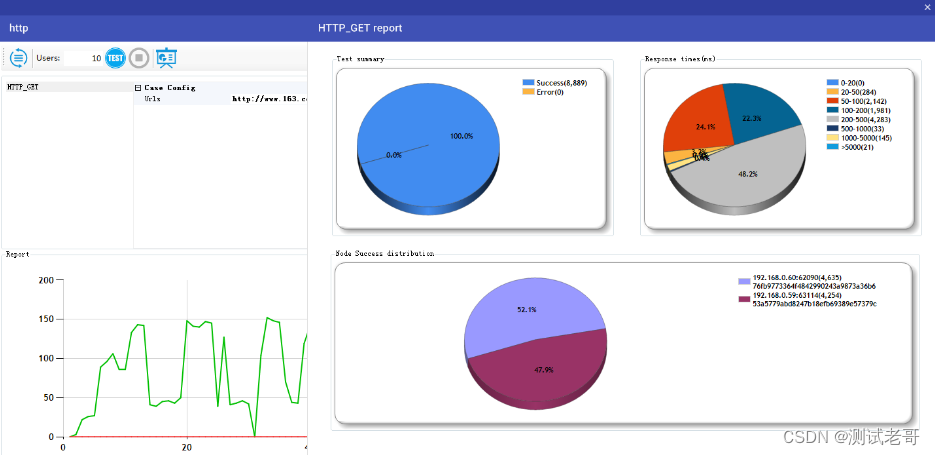 项目简介:基于 .NET 实现的分布式压力测试工具,用户可以根据需求编写相关的测试用例;通过工具的管理界面即可以把测试用例推送到服务中心,再根据实际压测的需求把测试用例分配到不同节点上运行。工具会根据测试的情况实时获取测试结果,测试完成后用户还可以查询具体的测试报告。节点采用进程隔离的方式运行测试用例,所以测试用例的运行都是相互独立。
