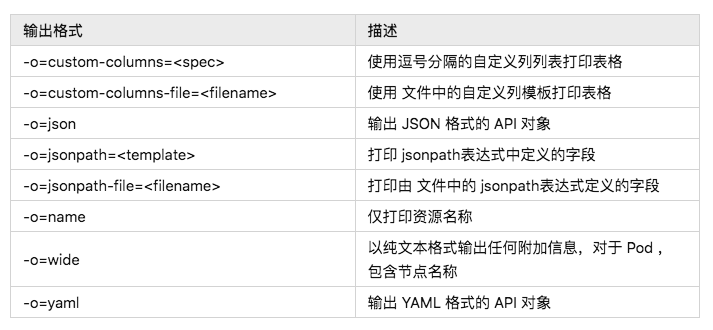 要以特定的格式向终端窗口输出详细信息,可以在 kubectl 命令中添加 -o 或者 -output 标志。
