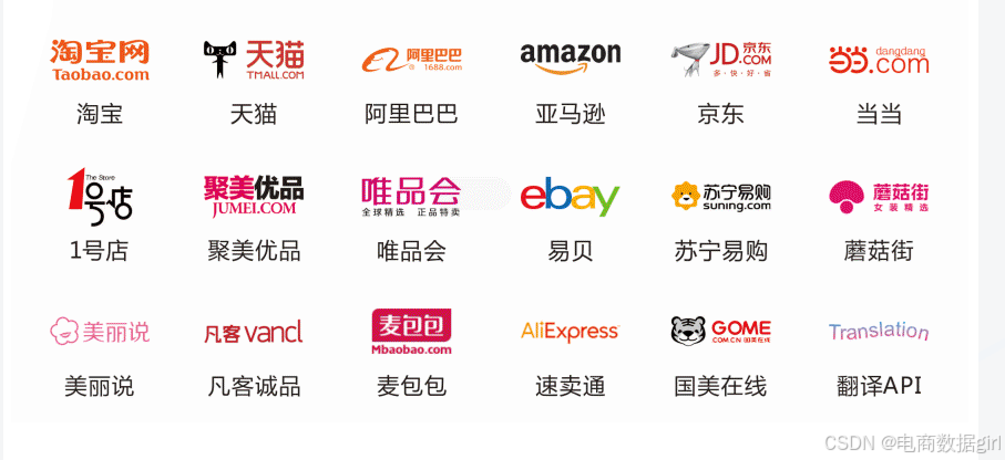 API(应用程序接口)是电商平台提供的标准化数据输出通道,开发者通过调用接口可直接获取结构化数据(如淘宝开放平台、京东宙斯平台等)。
