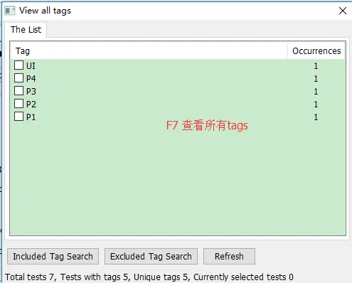 RF提供了通过在Settings中设置tags来管理用例的方法。Tag的应用非常的广泛和灵活,比如可以用来做用例筛选、版本管理、统计策略等。