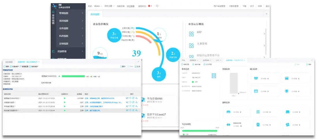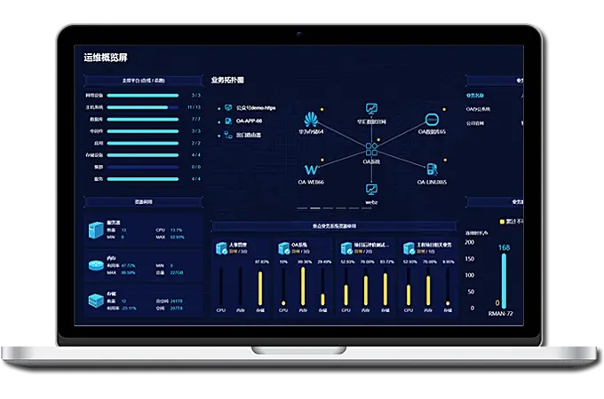 运维监控平台能够监控企业内部的各类IT资源,包括服务器、网络设备、安全设备、数据库、中间件、业务应用等,以及物联网设备。