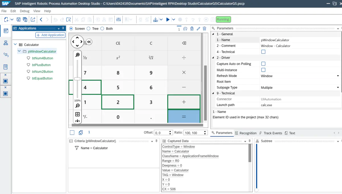 始终记住我们的目标是用SAP iRPA实现计算器应用上的按钮点击,所以首先得定位到计算器上的4, + , 2和=这几个按钮。