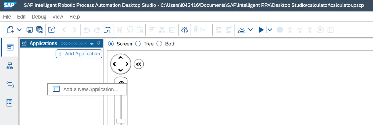 首先打开Studio,新建一个应用。这个应用就是我期望被SAP iRPA驱动的计算器应用,我称之为宿主应用。