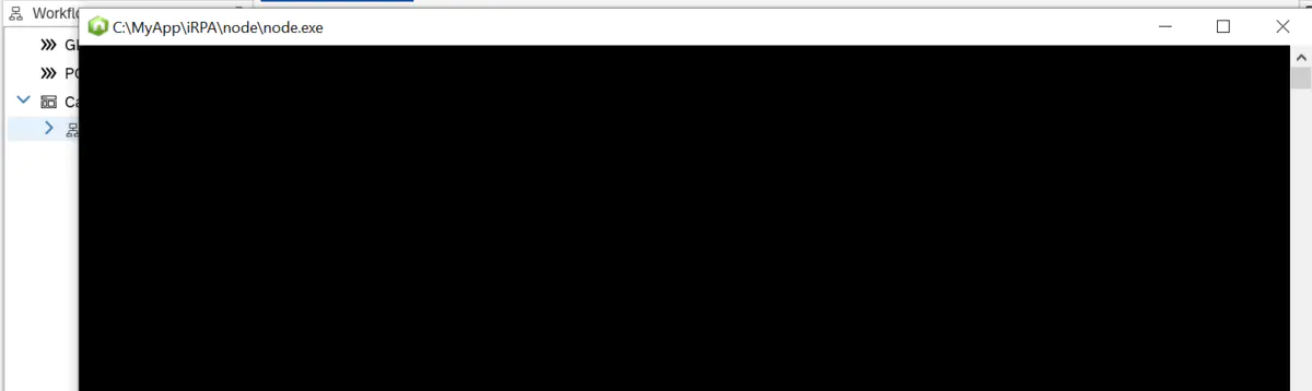 Build按钮点击后,出现一个node.exe的运行界面,暗示我们SAP iRPA底层运行基于nodejs.