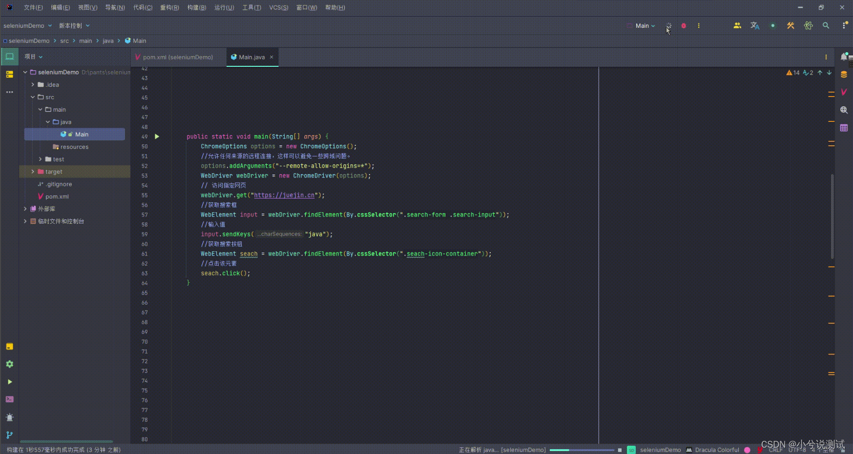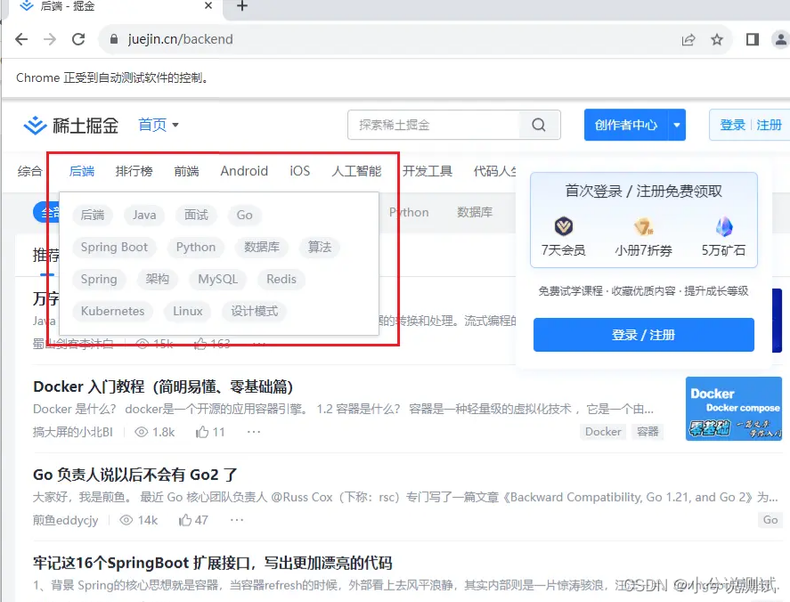 案例:我想要用webDriver在掘金主页搜索框中输入“selenium”并点击搜索。