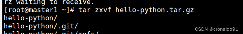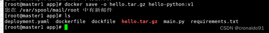 #把hello-python.tar.gz压缩包上传到k8s控制节点master1的root下,手动解压