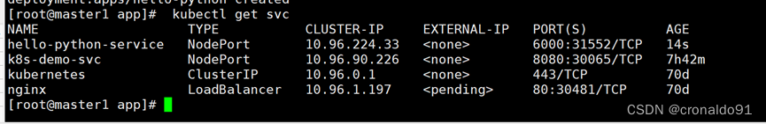 (9)创建deployment的yaml文件。(3)创建dockerfile。(8)在node1节点解压镜像。(11)访问python项目。(7)传送到node1节点。(5) 把镜像做成离线包。(10)更新yaml文件。(1)获取应用程序代码。(6) 查看镜像大小。