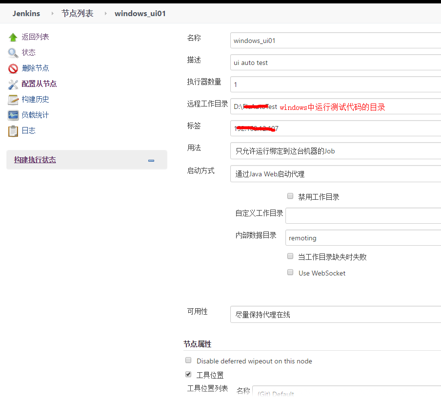 在centos中已搭建一台jenkins服务器,因为要跑selenium ui测试,而centos下没有图形界面跑selenium比较难调试,需要在windows中创建一个jenkins node,作为跑ui测试的节点