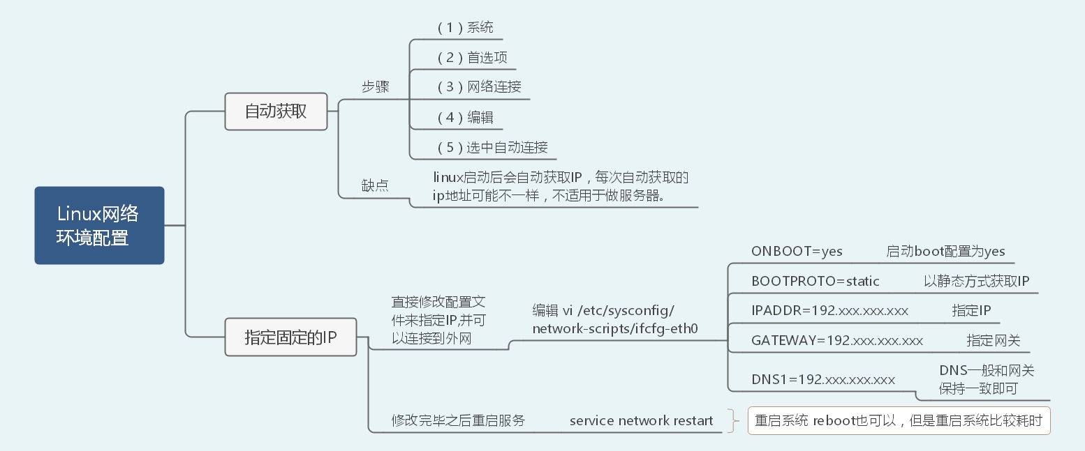 主要阐述了Linux网络环境配置中的自动获取IP和指定固定的IP,从而实现网络连接。