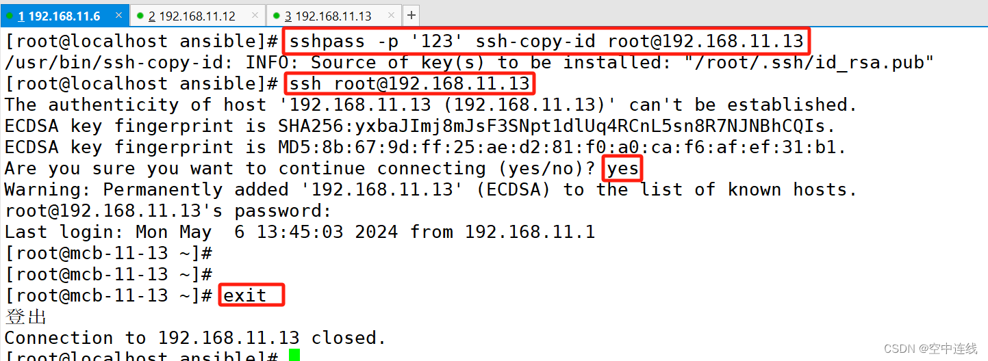 sshpass -p '123' ssh-copy-id root@192.168.11.13