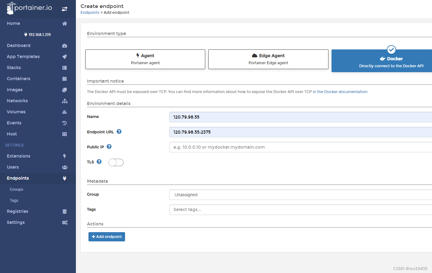 不需要配置用户名和密码,跟从idea安装的docker插件远程一样,如果需要认证则开启Tls 设置https证书
