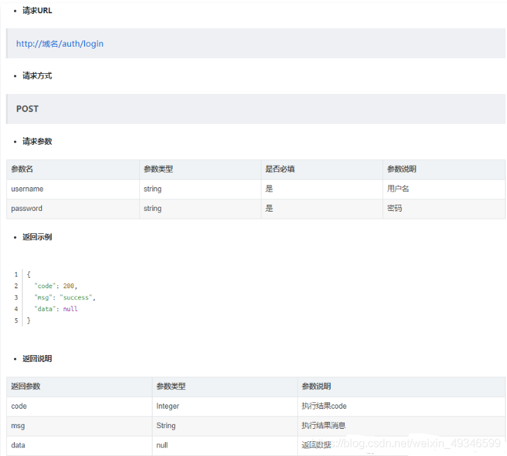 如下为一个简单的登录接口文档: