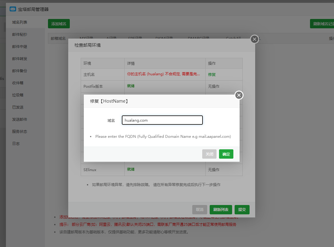 PS:如您服务器运营商限制了25端口是无法正常使用宝塔邮局插件的,请确保服务器运营商开放25端口