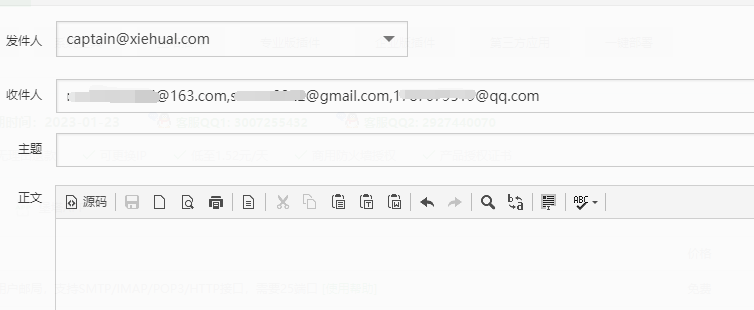 6.1 发件可多个用户发送,使用英文符号,隔开即可