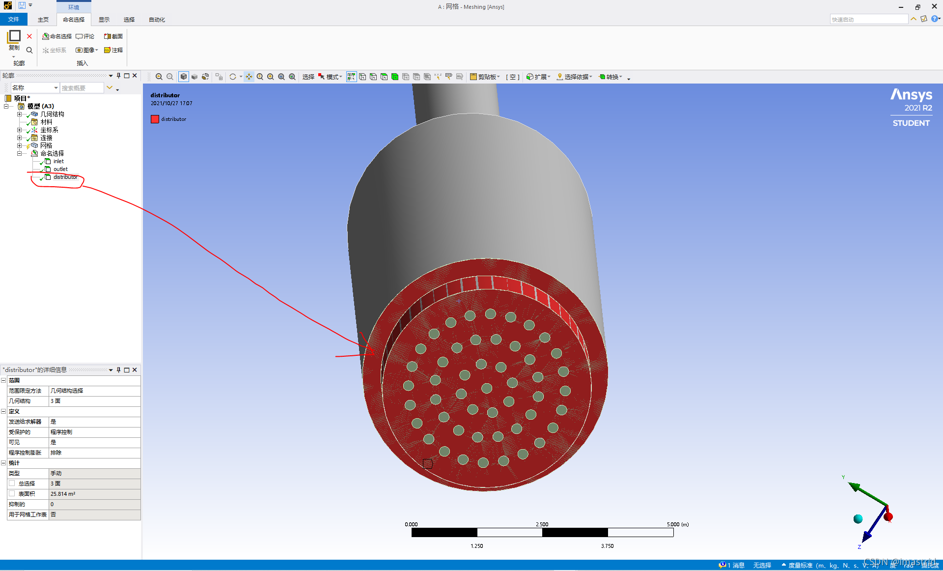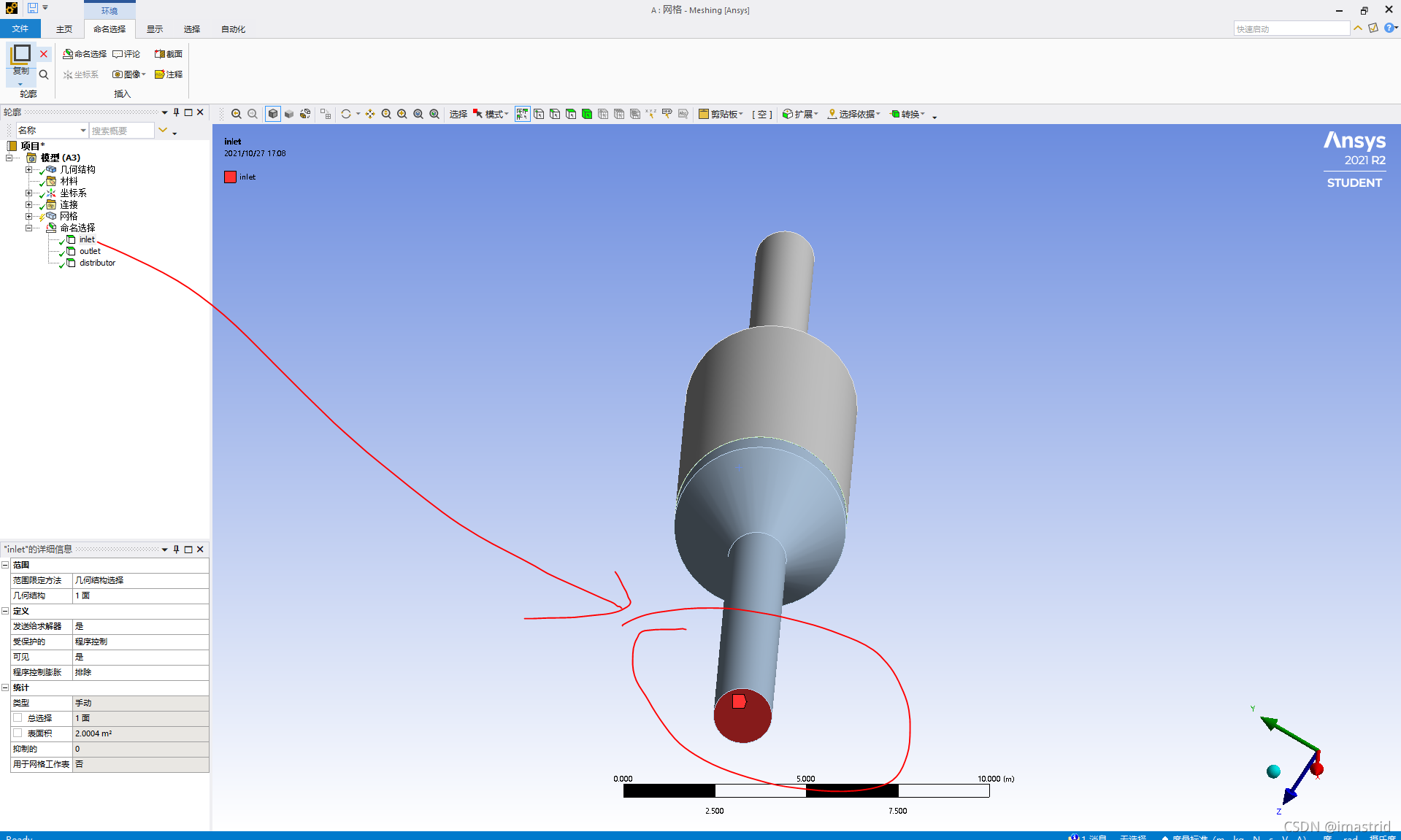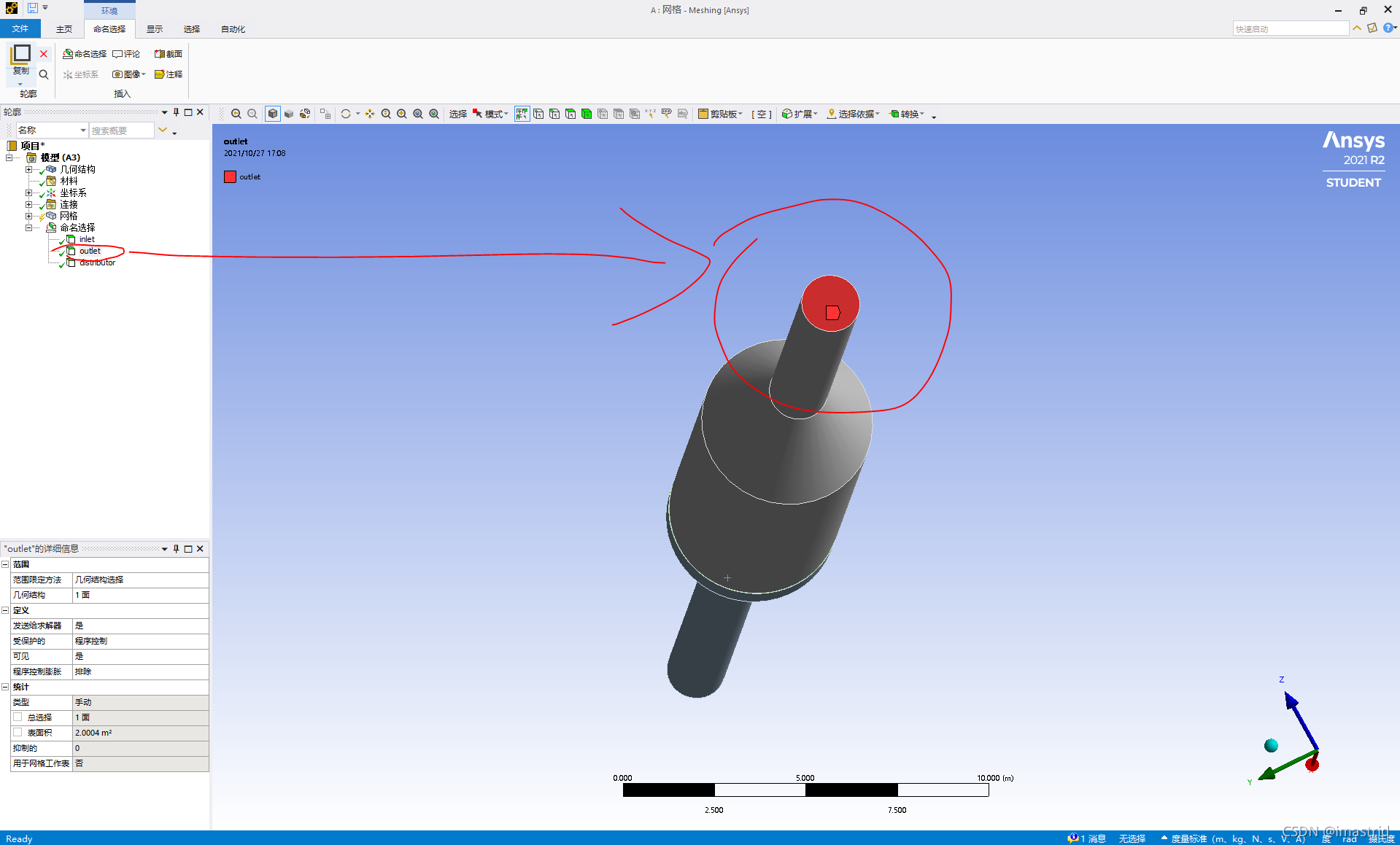然后输出到meshing里面,就可以选不带圈的部分设置成distributor: