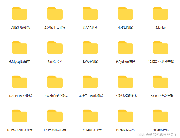 这些资料,对于【软件测试】的朋友来说应该是最全面最完整的备战仓库,这个仓库也陪伴上万个测试工程师们走过最艰难的路程,希望也能帮助到你!有需要的小伙伴可以点击下方小卡片领取